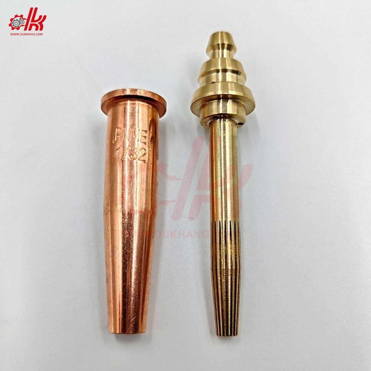 Béc Cắt Gas TANAKA Chính Hãng có khắc rõ ràng series, số béc và logo TANAKA trên thân. Bề mặt đồng thau sáng bóng, lỗ phun tròn đều, ren sắc nét. Mua tại Dủ Khang để đảm bảo 100% hàng chính hãng nhập khẩu.