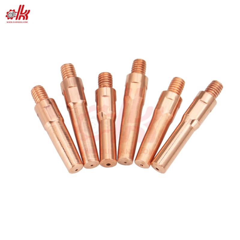 Béc đồng đỏ dẫn điện tốt nhất và giá rẻ, phù hợp hàn tay thủ công. Béc đồng hợp kim (CrZr) có độ cứng cao hơn, chịu nhiệt tốt hơn, giữ kích thước lỗ ổn định khi hàn lâu, rất lý tưởng cho hàn robot tự động.
