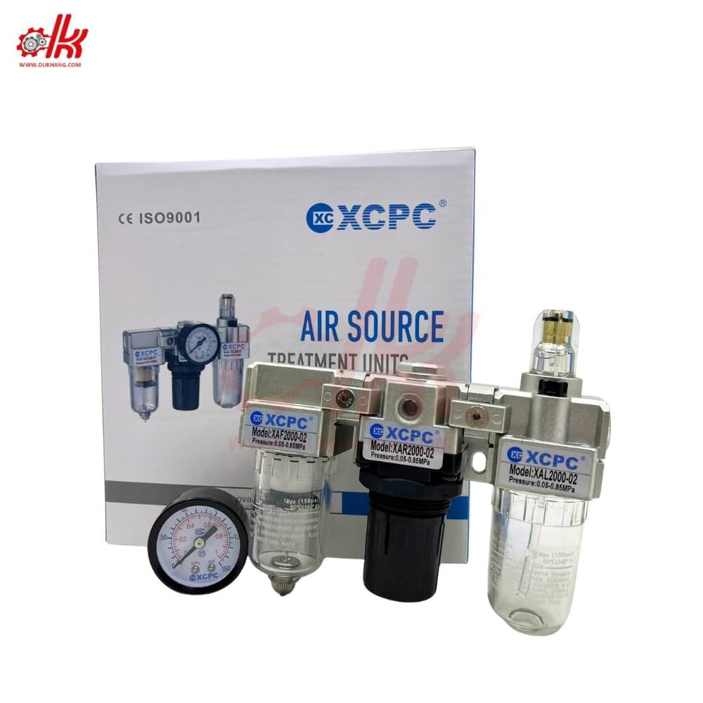 Hệ thống khí nén công nghiệp luôn cần một nguồn năng lượng sạch, ổn định và được bôi trơn đúng cách để các xi lanh và van từ tuổi thọ dài hạn. Bộ Ba Lọc Khí Nén XAC (XCPC) – hay còn gọi là trạm xử lý F.R.L (Filter – Regulator – Lubricator) – chính là giải pháp tối ưu “tất cả trong một” của hãng XCPC. Đây là sự kết hợp nguyên bản gồm một bộ lọc nước XAF, một van điều áp XAR có đồng hồ và một bình châm dầu bôi trơn XAL, được liên kết liền mạch qua các khớp nối chuyên dụng.