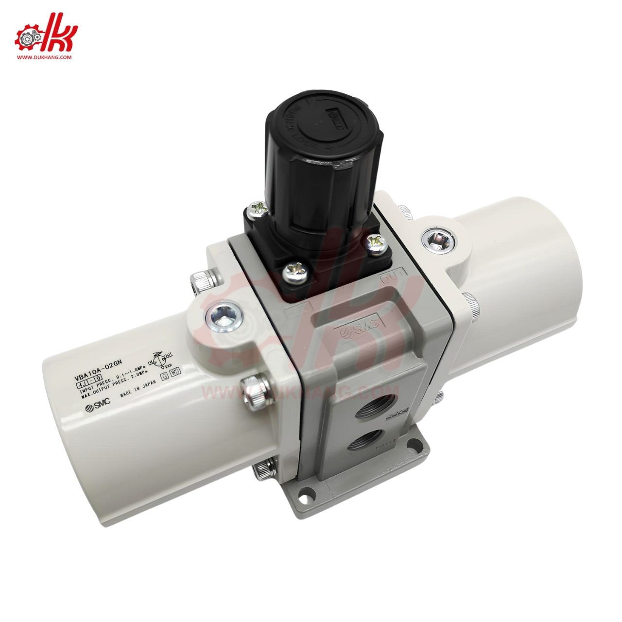 - Bộ Điều Chỉnh Áp Suất Đầu Vào (Regulator): Đây là thành phần điều chỉnh áp suất khí nén từ nguồn đầu vào, giúp đảm bảo rằng áp suất đầu vào luôn nằm trong khoảng an toàn và phù hợp với thiết bị.
