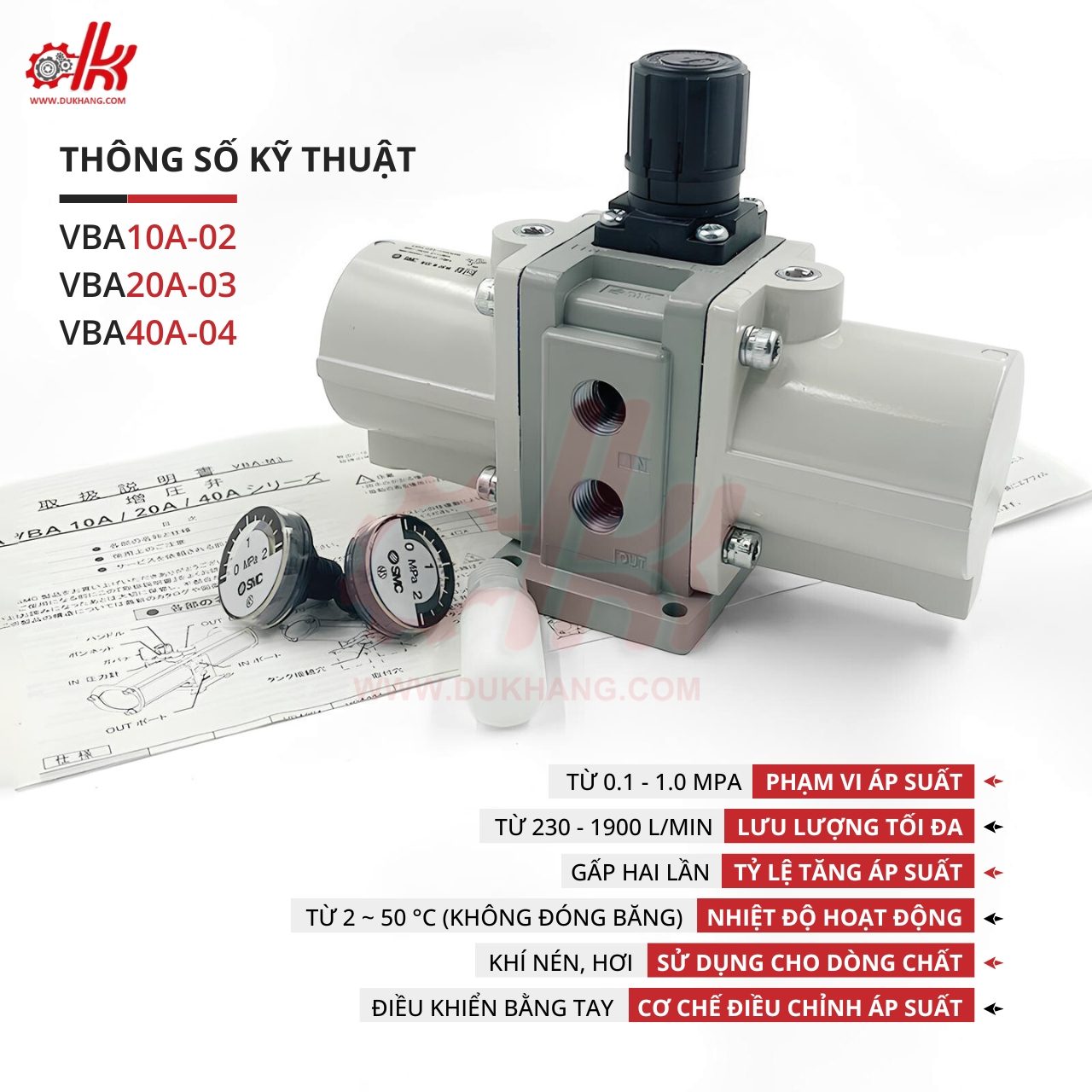 - Ổn Định Áp Suất Đầu Ra: Bộ tăng áp khí nén VBA giúp duy trì áp suất đầu ra ổn định, ngay cả khi áp suất đầu vào thay đổi. Điều này đảm bảo rằng các thiết bị sử dụng khí nén luôn hoạt động hiệu quả và ổn định.