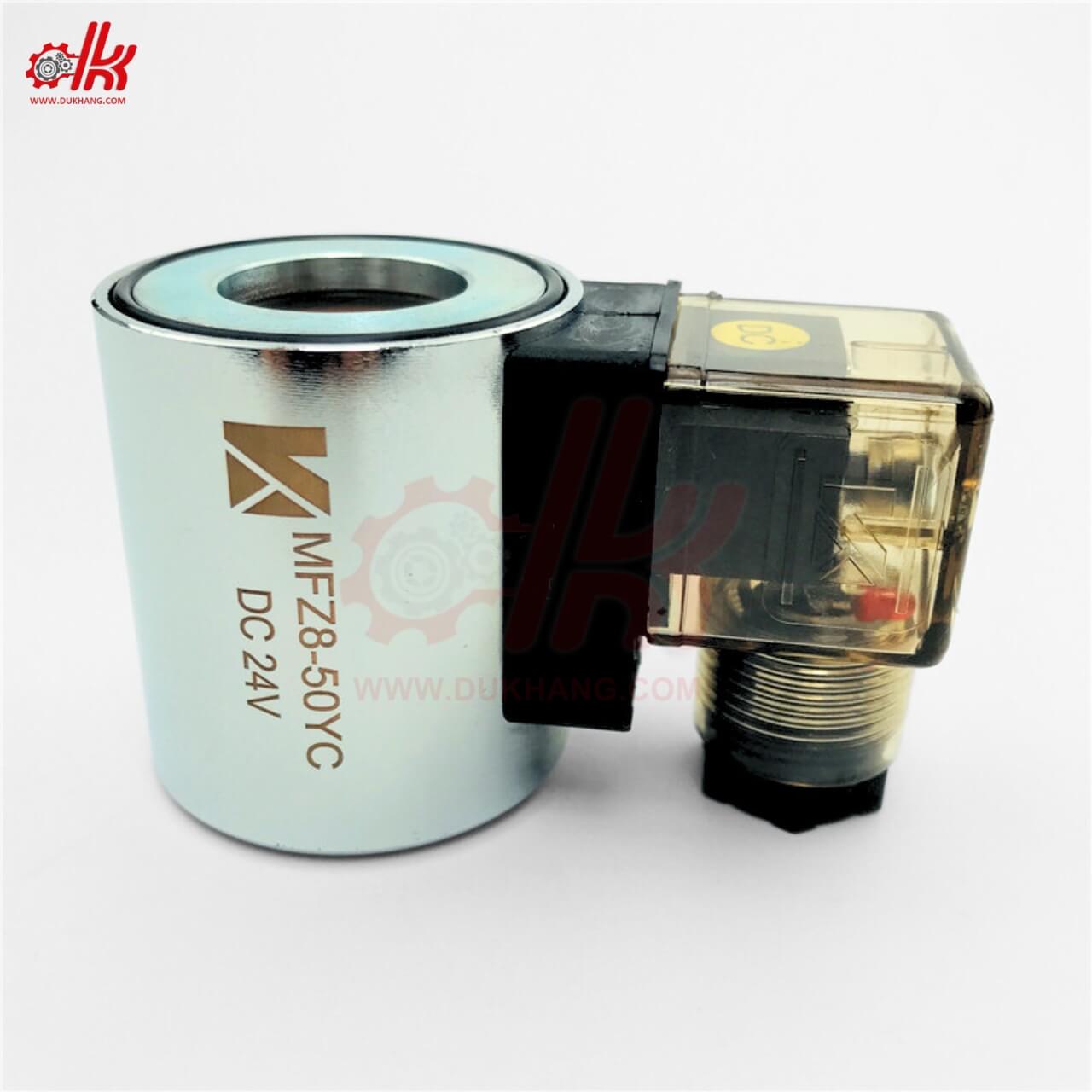 Coil van điện từ MFZ8-50YC là bộ phận chính tạo ra lực từ để điều khiển hoạt động của van điện từ trong hệ thống thủy lực hoặc khí nén.