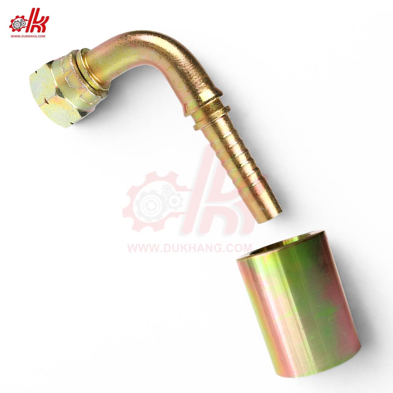 Cốt cong đầu bấm ống thủy lực có cấu tạo đặc biệt gồm nhiều chi tiết được gia công chính xác, giúp tạo nên mối nối bền chắc, kín khít trong hệ thống thủy lực cao áp. Thiết kế cong 45° hoặc 90° giúp sản phẩm linh hoạt hơn trong lắp đặt tại những vị trí khó thao tác.