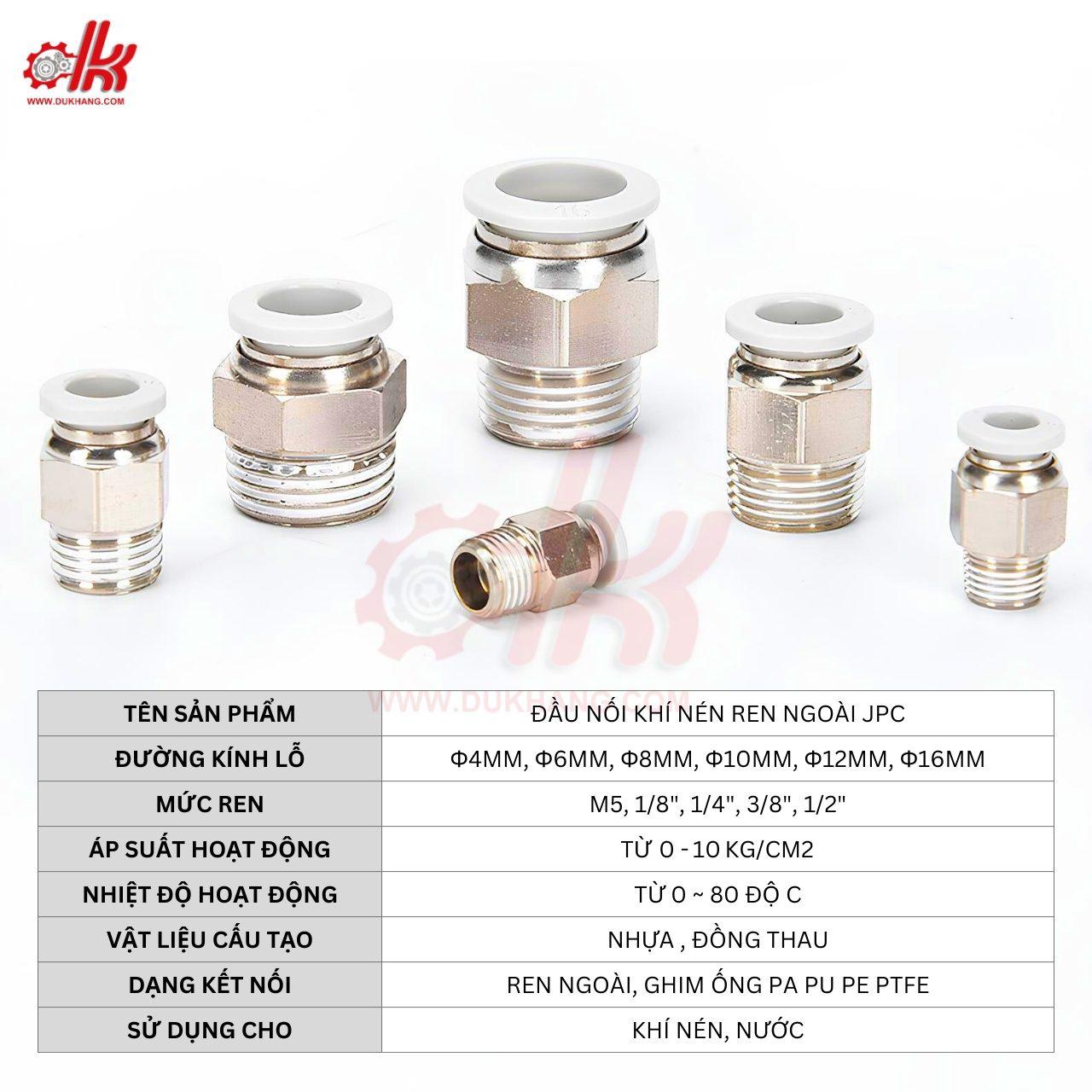 - Ngành Công Nghiệp Tổng Hợp: Trong các ứng dụng công nghiệp tổng hợp, đầu nối khí nén ren ngoài JPC có thể được tích hợp vào hệ thống khí nén cho việc xử lý khí và áp suất.