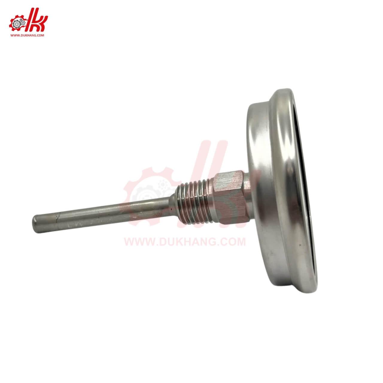 Bộ phận cảm biến (chân cảm biến/thân dò): Đây là bộ phận quan trọng nhất, có nhiệm vụ tiếp xúc trực tiếp với môi trường cần đo nhiệt độ. Chân cảm biến thường là một ống kim loại rỗng, bên trong chứa vật liệu nhạy cảm với nhiệt độ (như lưỡng kim hoặc chất lỏng giãn nở). Chiều dài và đường kính của chân cảm biến thay đổi tùy theo model và ứng dụng.