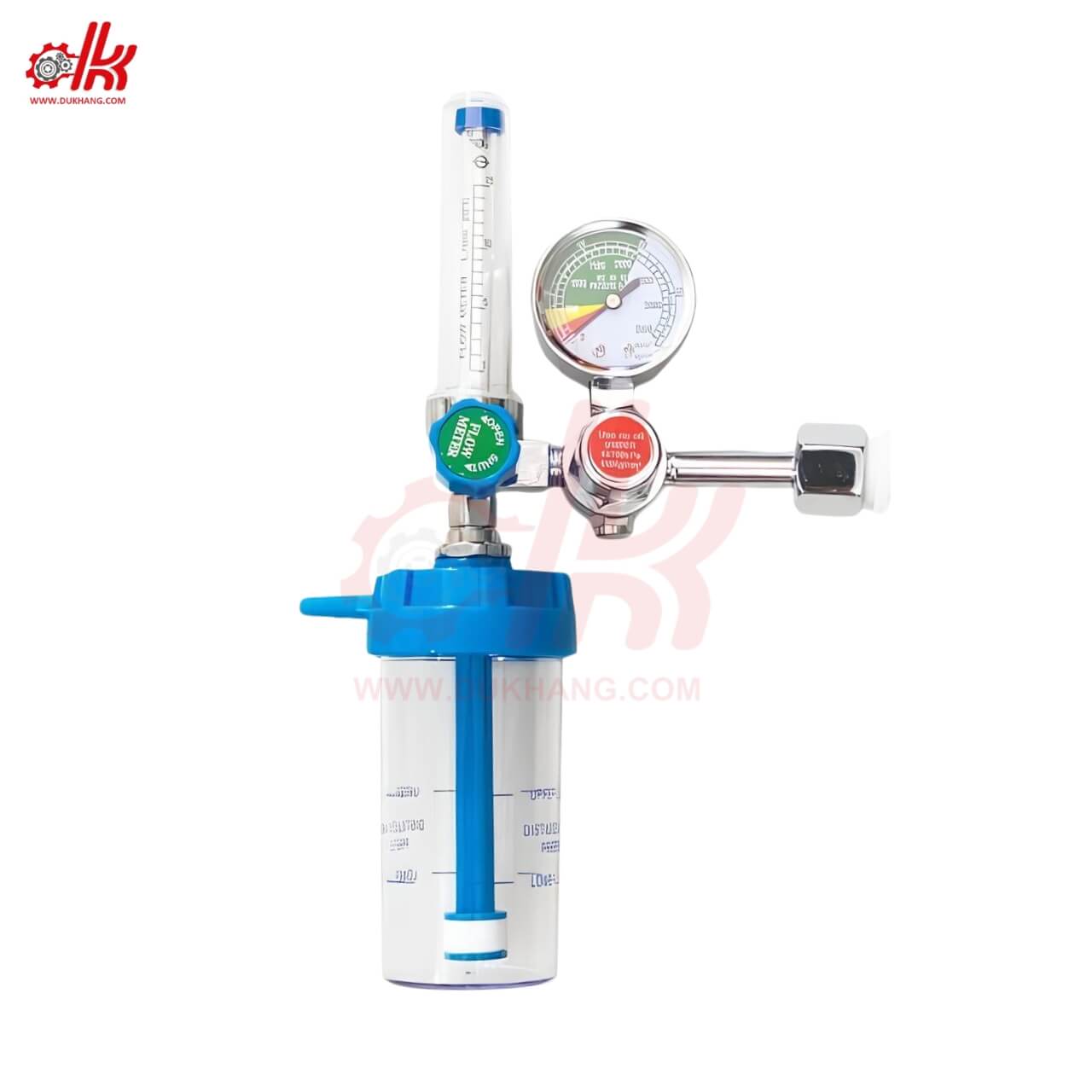 Bộ phận giảm áp: Đây là trái tim của thiết bị, có nhiệm vụ chính là hạ áp suất cao của khí oxy từ bình chứa (thường lên đến hàng ngàn psi) xuống một mức áp suất thấp hơn, an toàn và ổn định để sử dụng cho bệnh nhân. Bộ phận này thường được làm từ kim loại bền, có khả năng chịu được áp suất lớn và chống ăn mòn.
