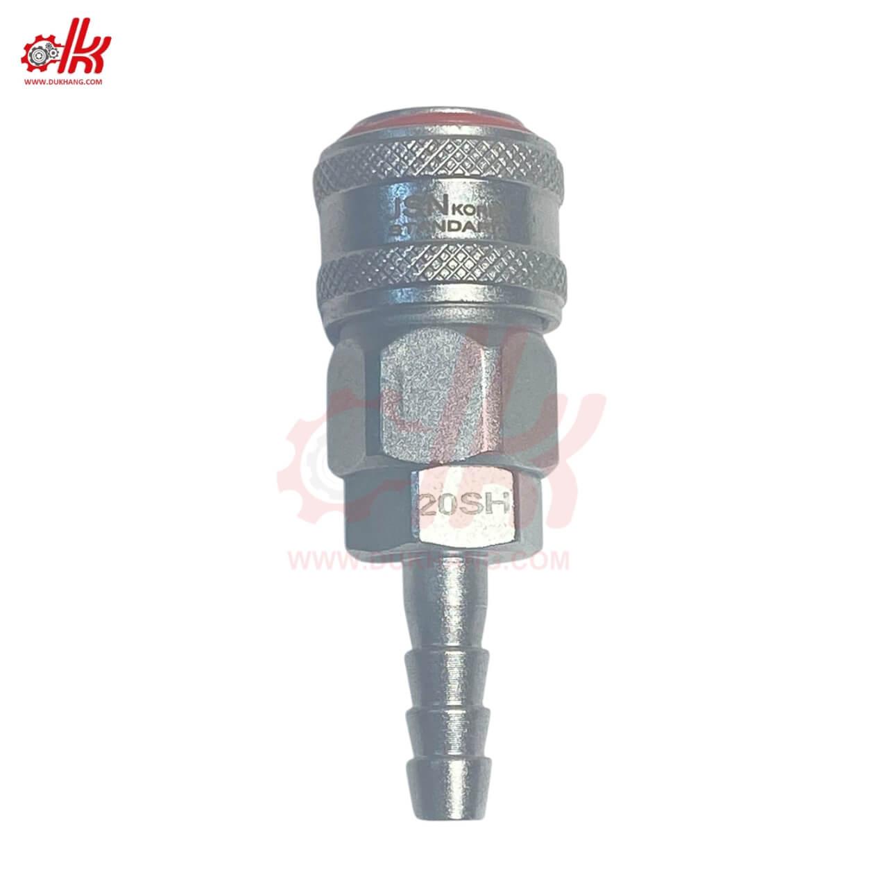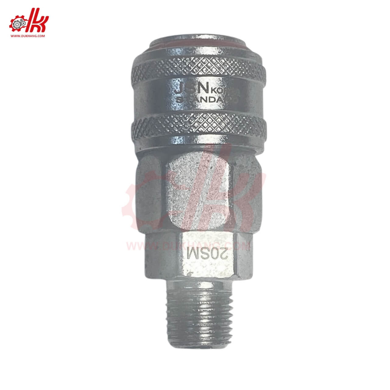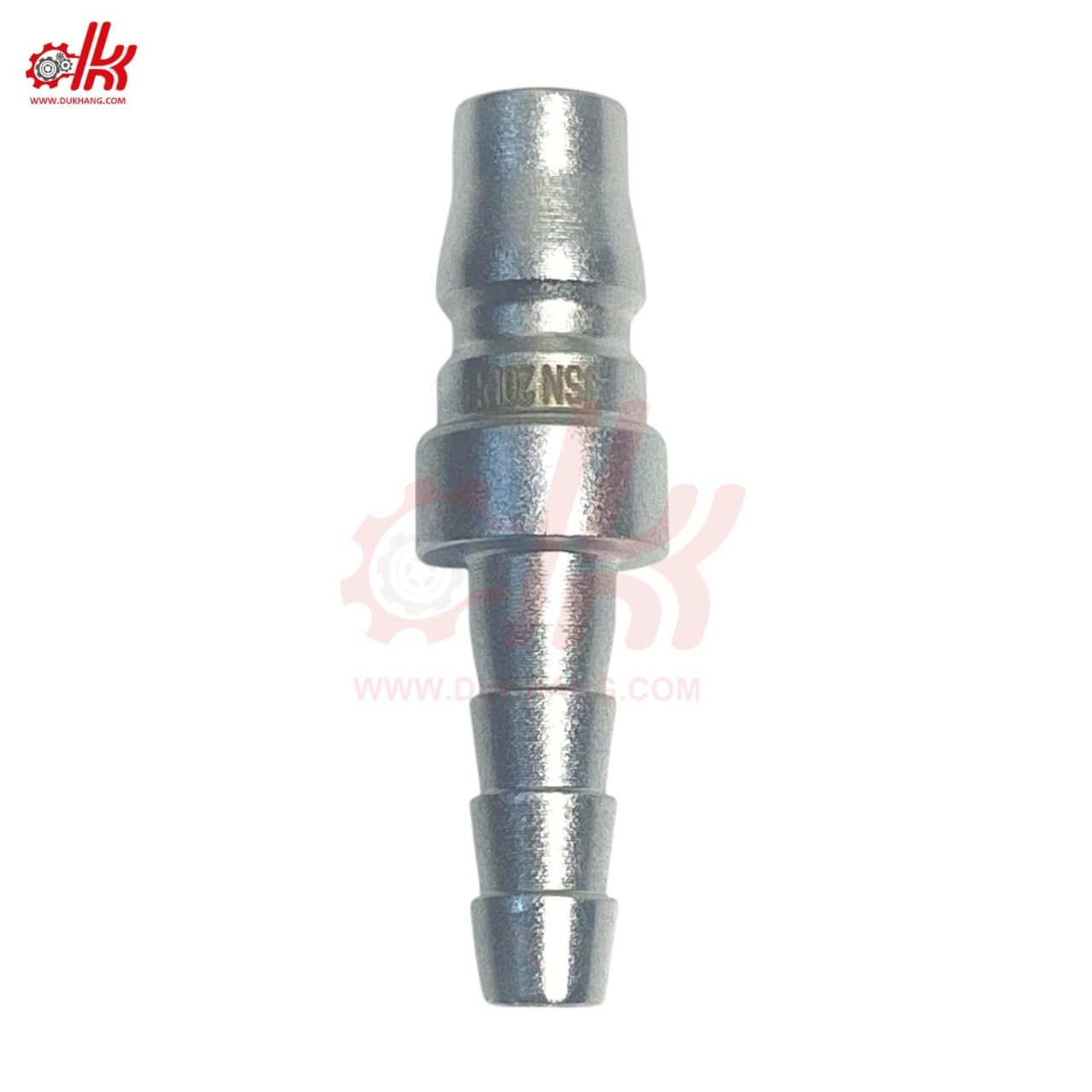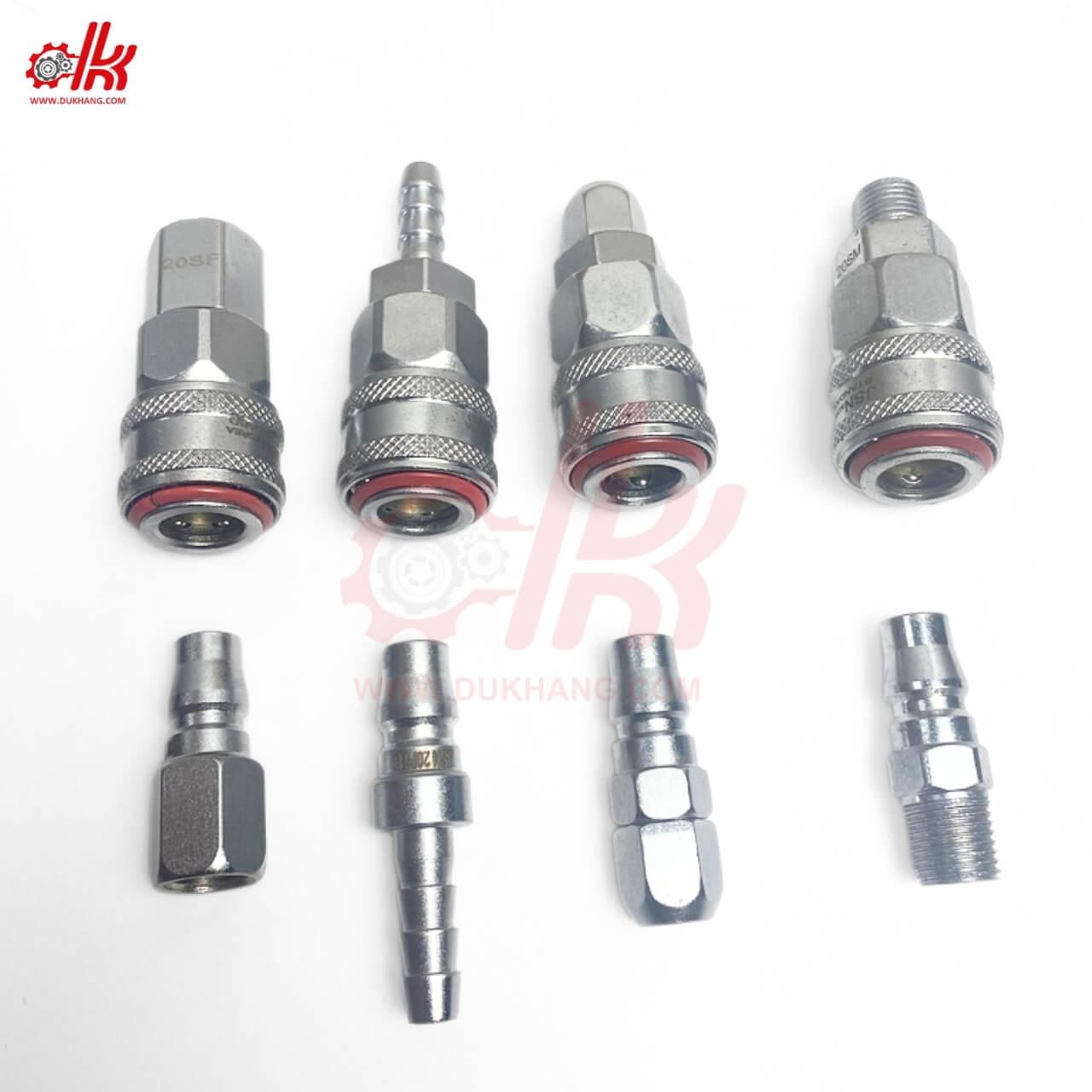 Đầu nối: Là phần được gắn vào đường ống hoặc thiết bị cần kết nối. Đầu nối được thiết kế để vừa khít và khóa chặt vào thân khớp nối. Tùy thuộc vào ứng dụng, đầu nối có thể là dạng ren ngoài, ren trong, hoặc dạng ống trơn để gắn ống khí/lỏng. Khi kết nối, đầu nối sẽ được đẩy vào thân khớp nối, kích hoạt cơ chế khóa và làm kín.