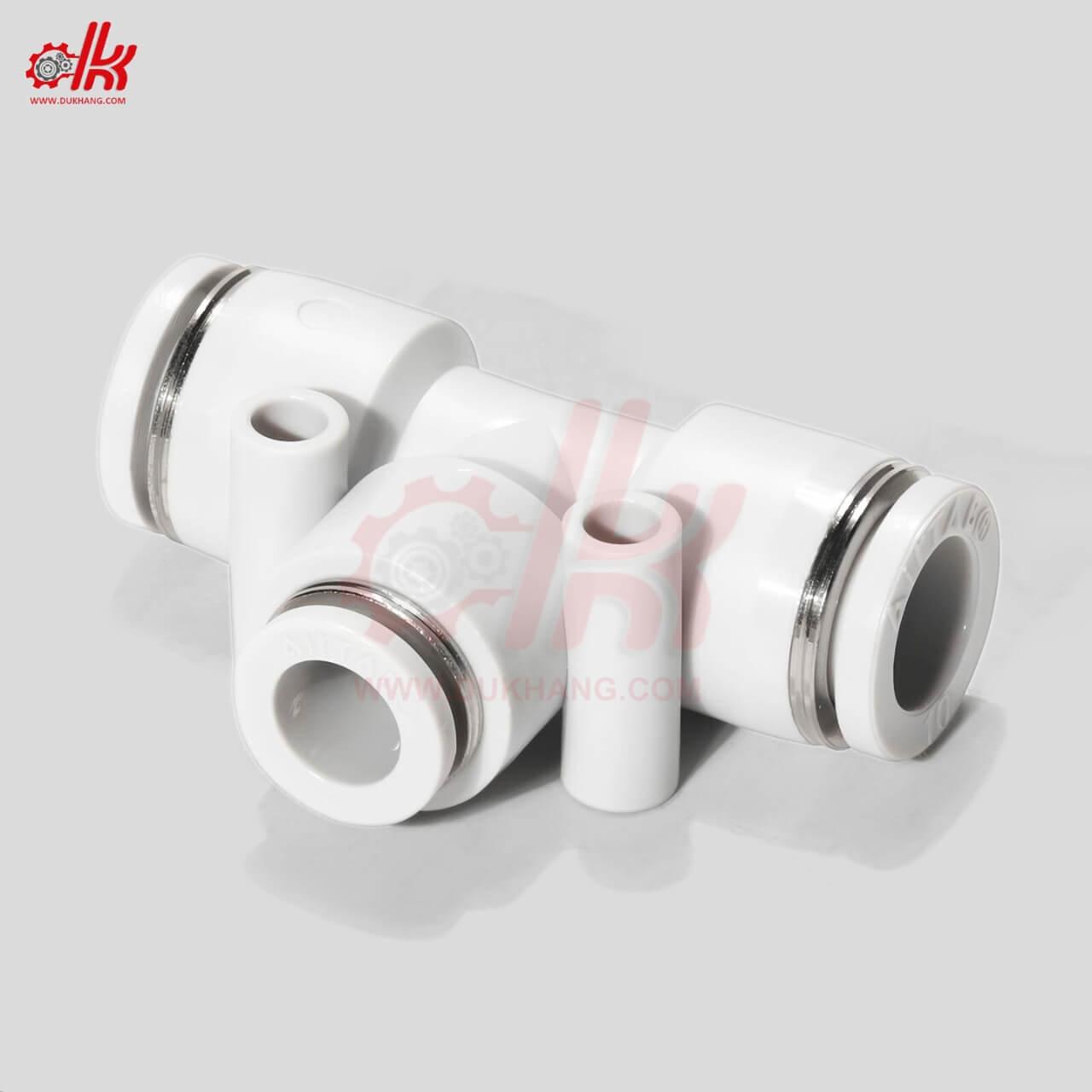 - ● Thiết kế dạng chữ T nhỏ gọn, tối ưu cho các hệ thống khí nén mini hoặc cụm thiết bị lắp ráp hẹp.