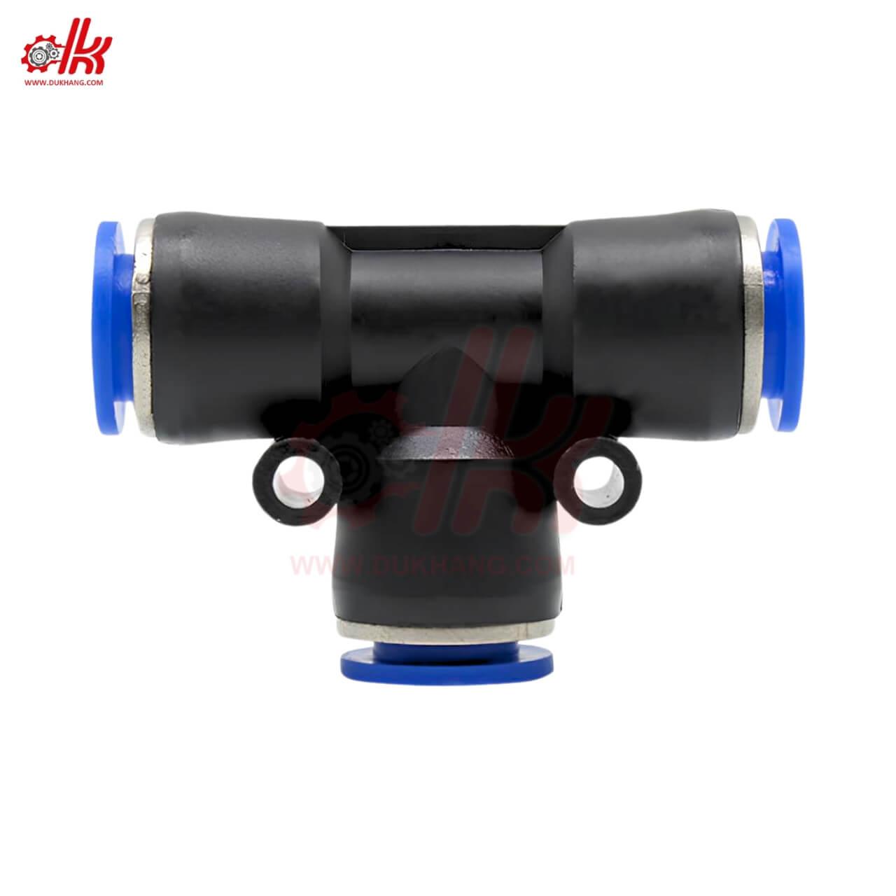 - ✅ Thiết kế dạng chữ T với ba đầu nối nhanh, cho phép thao tác cắm/rút ống tiện lợi, không cần dụng cụ.