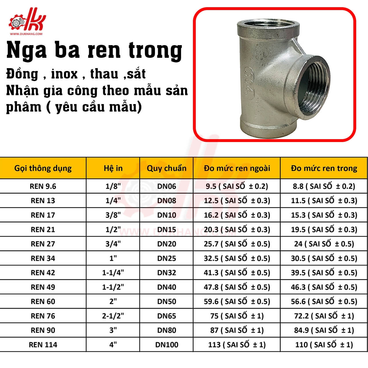 Thông Số Kỹ Thuật Của Tê Ren Trong Inox