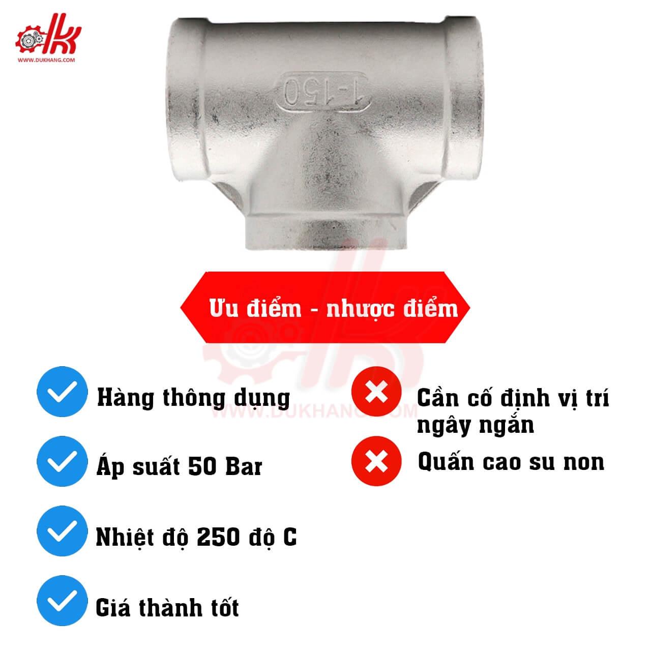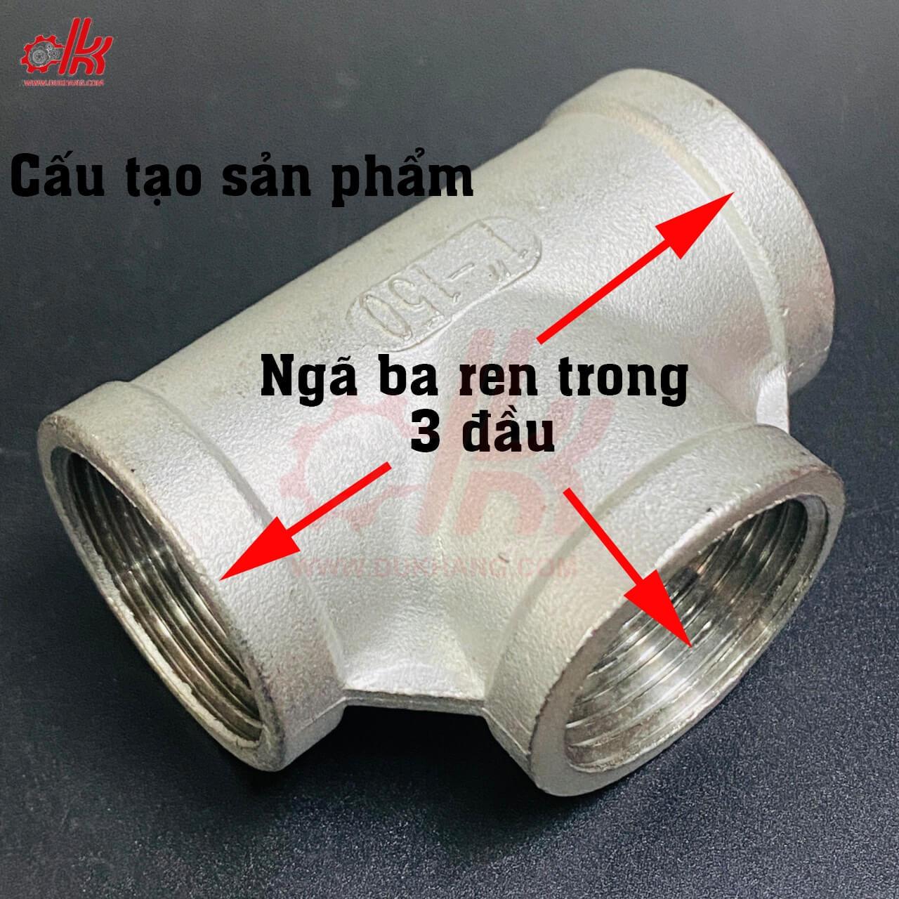 - Kiểu kết nối : Ba đầu ren trong inox