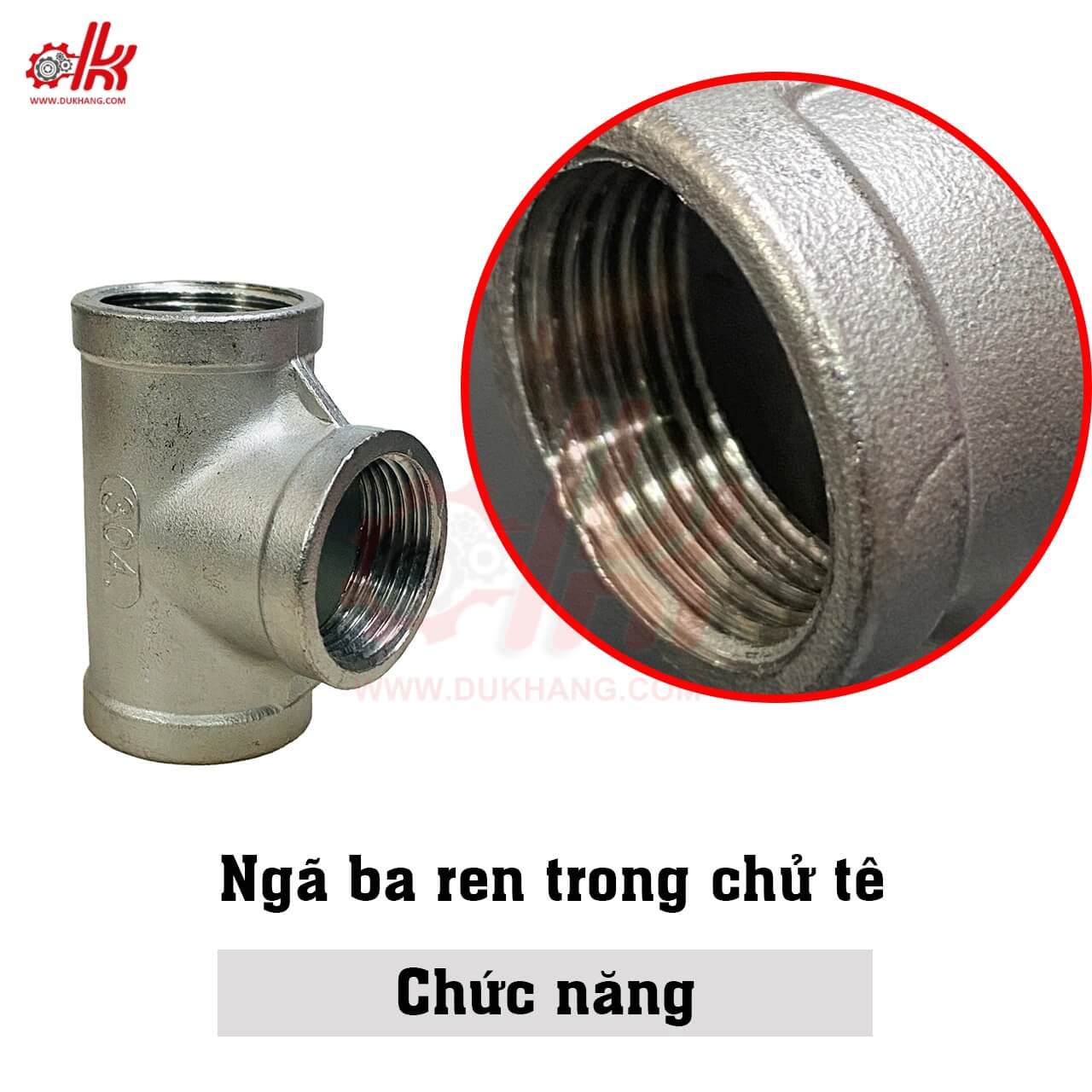 Tê ren trong inox được thiết kế đơn giản nhưng cực kỳ chắc chắn, gồm nhiều bộ phận được gia công chính xác để đảm bảo độ kín khít, độ bền và hiệu suất cao.