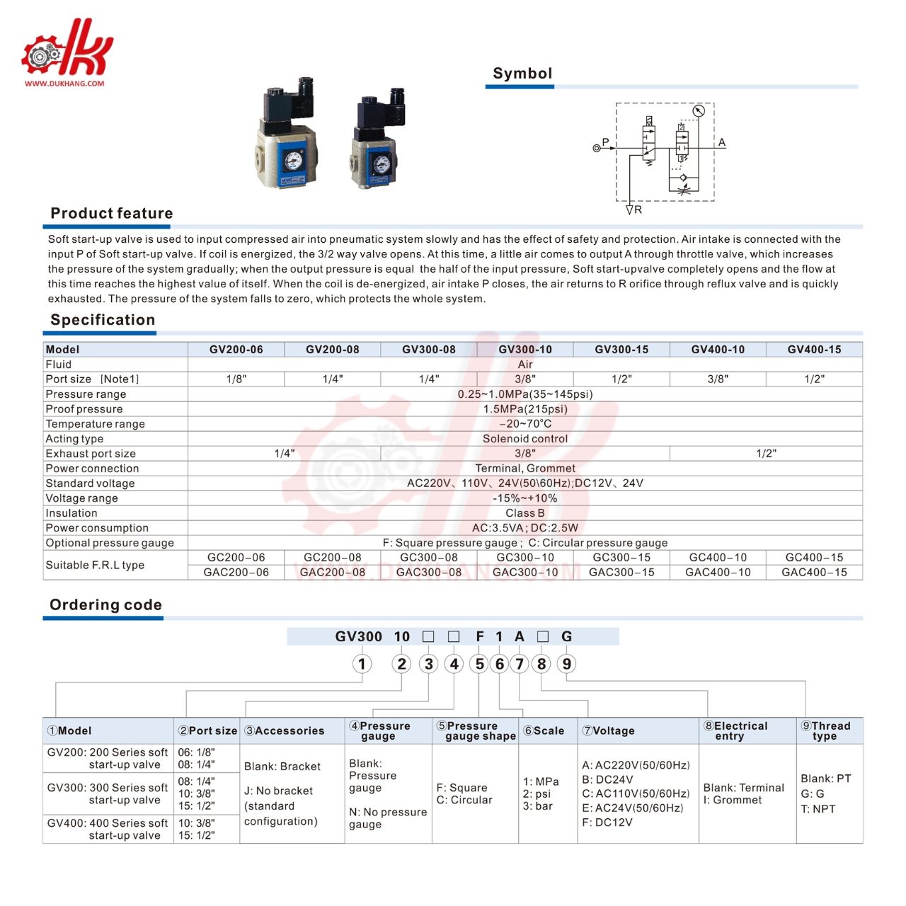 - Tên sản phẩm: Van điện từ khởi động chậm khí nén AIRTAC GV