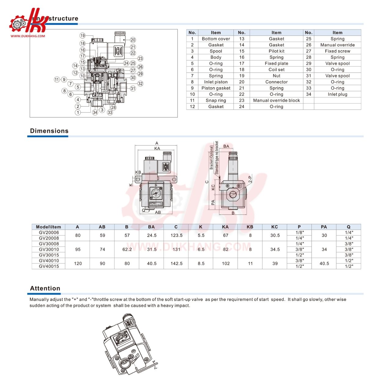 Thông số kỹ thuật của van điện từ khởi động chậm khí nén AIRTAC GV