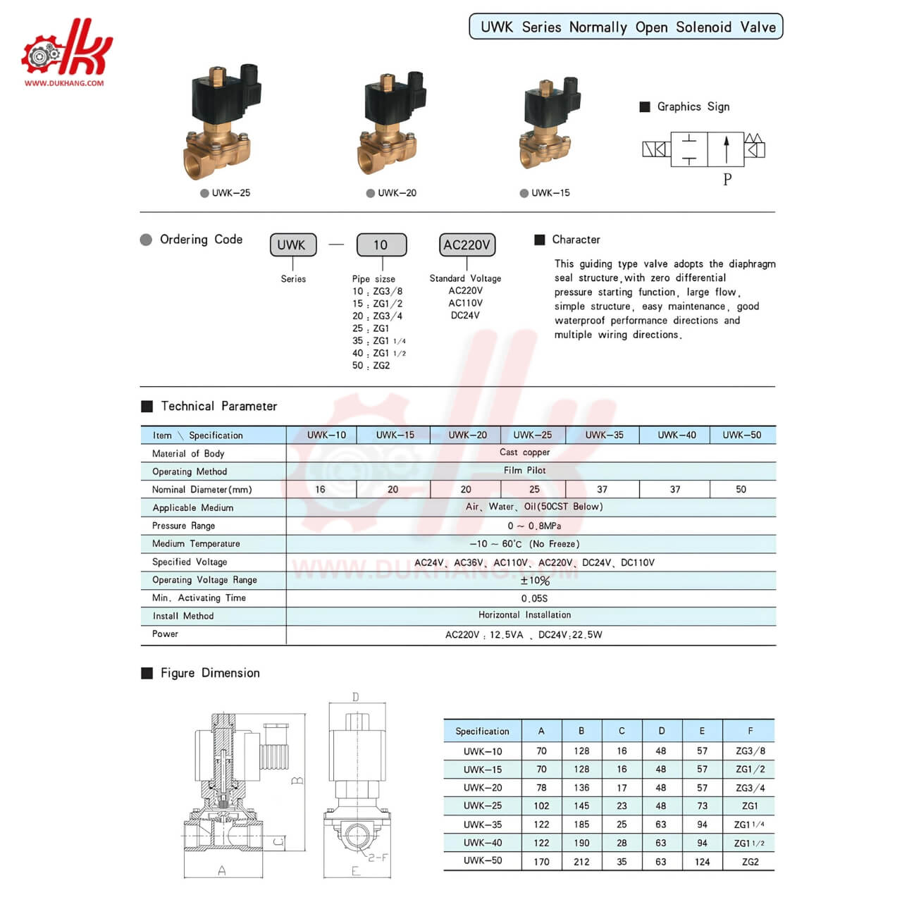- Tên sản phẩm : Van Điện Từ Thường Mở STNC UWK
