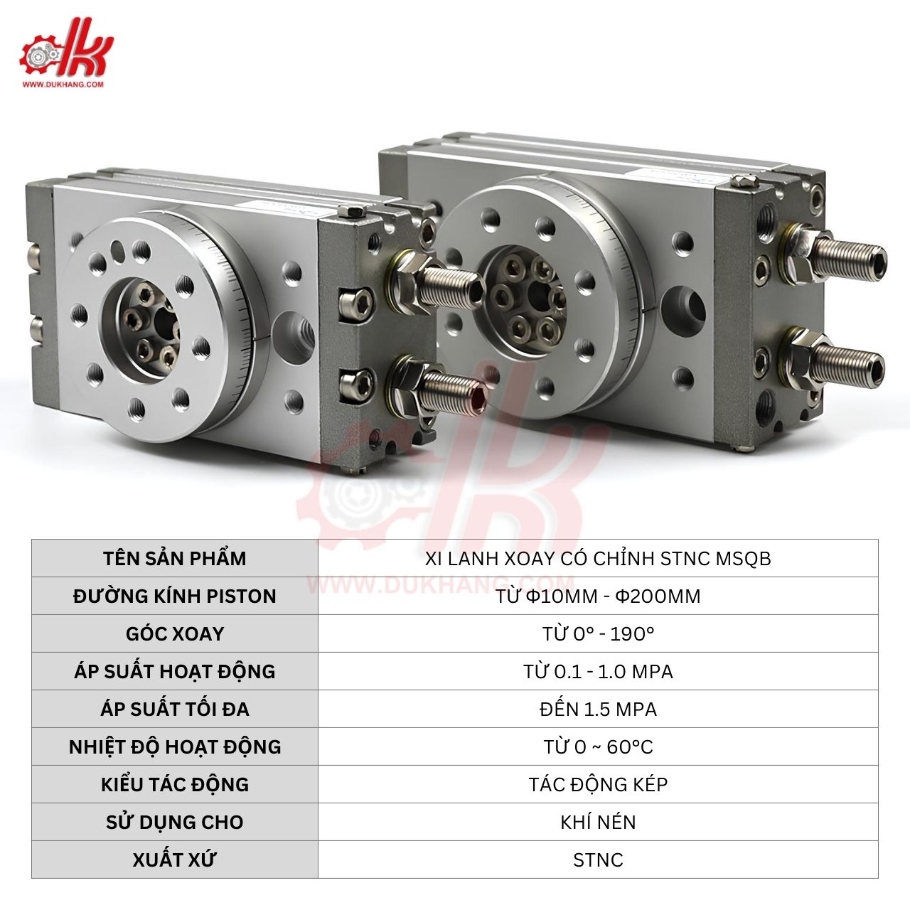 Thông số kỹ thuật của xi lanh xoay có chỉnh STNC MSQ